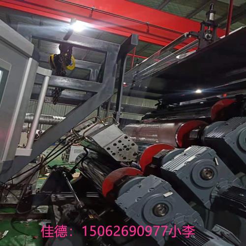 TPE汽車內(nèi)飾片材擠出機(jī)_TPE汽車內(nèi)飾片材擠出機(jī)_佳德塑機(jī)加壓式密煉機(jī) → 自動不銹鋼提升機(jī)→ 錐雙強(qiáng)制喂料機(jī) →單螺桿擠出機(jī) →成型模具 →三輥壓延機(jī)→牽引機(jī)→裁片機(jī)—輸送二、機(jī)組特點: 此機(jī)組是針對片材設(shè)計而成,它比起傳統(tǒng)的生產(chǎn)流程減少了開練真真做到低投入,低噪音、低能耗、高效能、高回報、用工少、質(zhì)量穩(wěn)定生產(chǎn)連續(xù)的理念;螺桿采用特殊混料功能及高塑化能力設(shè)計。 衣架型模頭采用特殊雙節(jié)流設(shè)計,使板材厚薄調(diào)整更為準(zhǔn)確。 溫度控制±1℃可很好的控制塑化過程及板材厚薄,平整性。 三輥壓延機(jī)采用水平、垂直或45度傾斜式,可自由升降方式。 板材厚薄控制采用螺桿調(diào)整及壓輪雙向調(diào)整控制板材厚薄度。 獨立控制的輥筒溫控系統(tǒng)能很好控制壓輥輪溫度使板材,厚薄均勻。切片機(jī),板材長度及數(shù)量準(zhǔn)。 備有自動計米器可設(shè)定產(chǎn)品長度。三、適用范圍廣: 該生產(chǎn)線能生產(chǎn)eva鞋材、PE、PP或PVC等板材片材,碳酸鈣添加量(可達(dá)50-75);設(shè)備適應(yīng)能力強(qiáng),