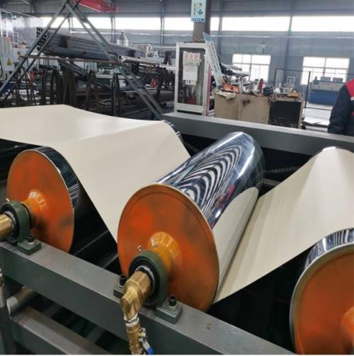 開機生產(chǎn):開機前調整三棍間隙,間隙高度與生產(chǎn)計劃產(chǎn)品厚度相符,但實際產(chǎn)品厚度以產(chǎn)品正常生產(chǎn)后,實測并進行微量調整;調整三輥間隙時應注意不得入鐵及硬物件(含塞尺)入間隙內擠壓,以免碰傷三輥;正常的調節(jié)高度應比生產(chǎn)計劃單要求厚度少0.05mm為宜,在產(chǎn)品試產(chǎn)過程中進行微調。